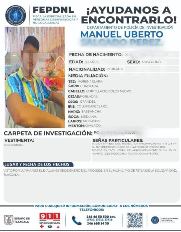 Tetla, Tlaxcala – El 5 de enero de 2026, un comando armado privó de la libertad a Rolando Humberto N., alias “El Pescado”, de 31 años, presunto cabecilla de la banda “Los Pescados” en Apizaco. Junto a él fue levantado un hombre identificado como Manuel, según reportes extraoficiales. Ambos permanecen desaparecidos.