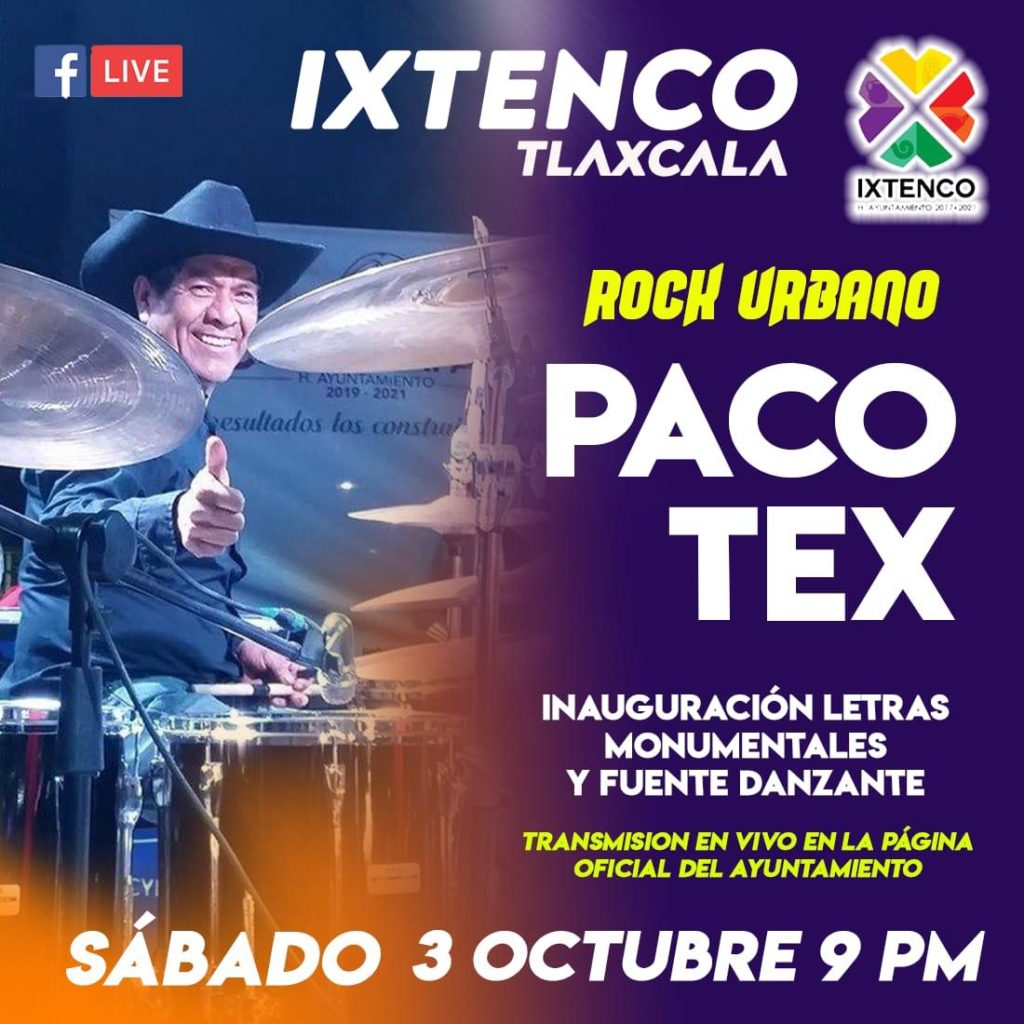 Este concierto, dará inicio en punto de las 21 horas, el próximo sábado 3 de octubre en la página: https://www.facebook.com/AyuntamientoIxtenco2017 y será encabezado por “Paco Tex”, integrante de la agrupación “Tex Tex”.