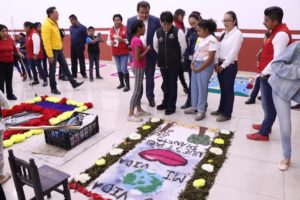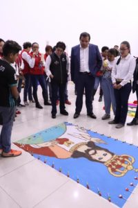 Con el objetivo de impulsar e inculcar y sobre todo preservar en la niñez y juventud de Huamantla el arte efímero de la elaboración de alfombras y tapetes, es que el Presidente Municipal de Huamantla, Jorge Sánchez Jasso, y su esposa, la Presidenta del Sistema DIF Municipal, Gabriela Escamilla Pérez, acompañados de sus hijas, presenciaron el tercer concurso de mini alfombras y mini tapetes que se desarrolló como parte de las actividades de la Feria Nacional de Huamantla 2019.