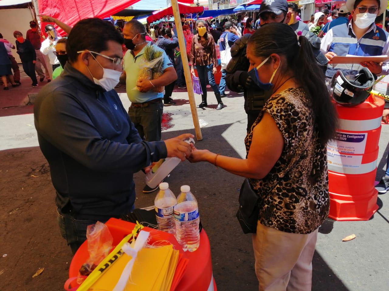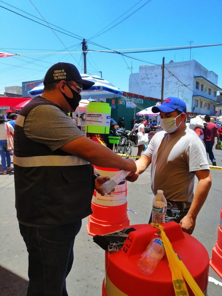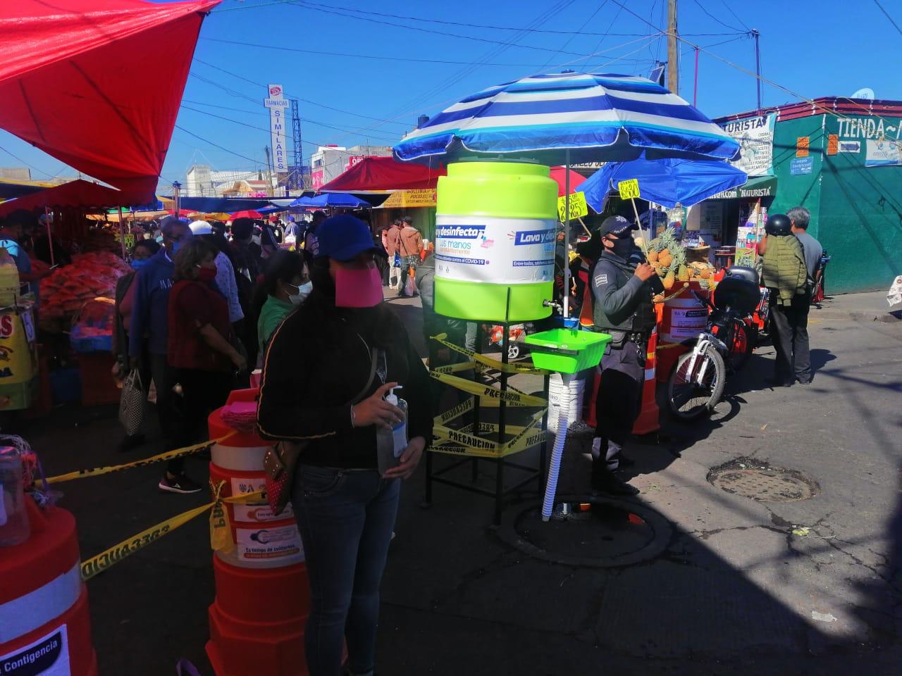 Una de cada tres personas portaron su cubrebocas, por lo que las medidas sanitarias resultan cada vez más favorecedoras en los filtros instalados en los accesos del tianguis, en donde además hay gel antibacterial y lavamanos portátiles.