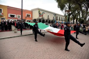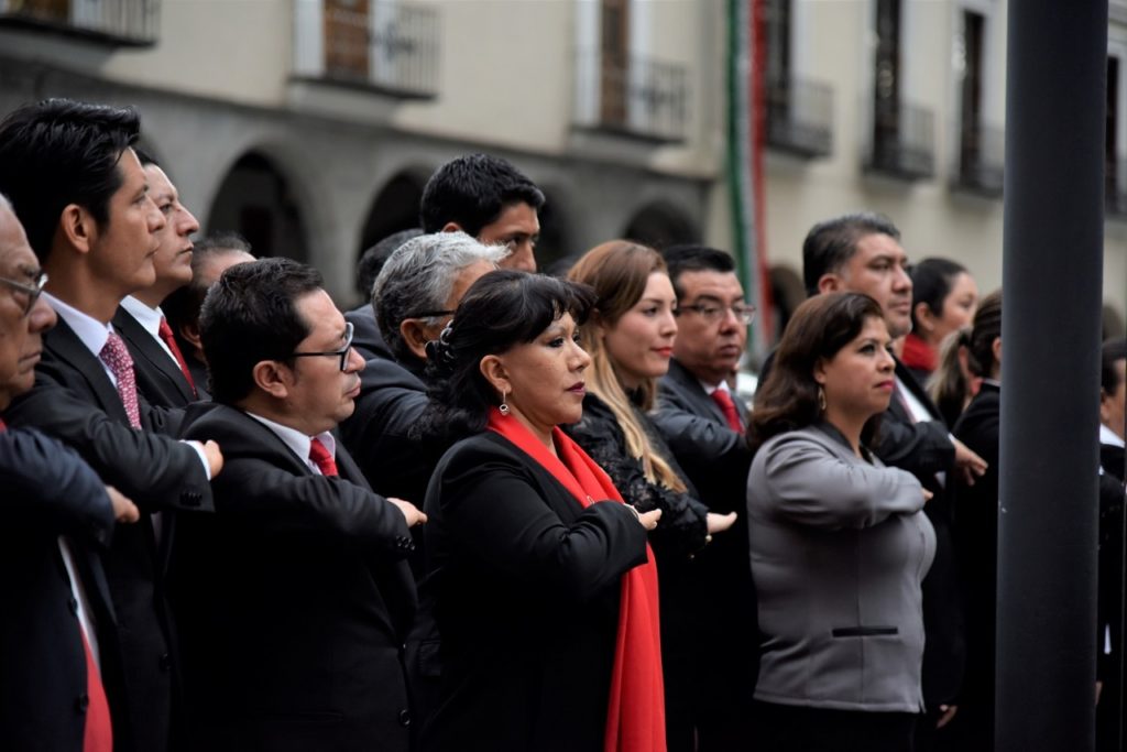Directivos y personal del ayuntamiento de Tlaxcala presenciaron el Arrío del Lábaro Patrio en la capital