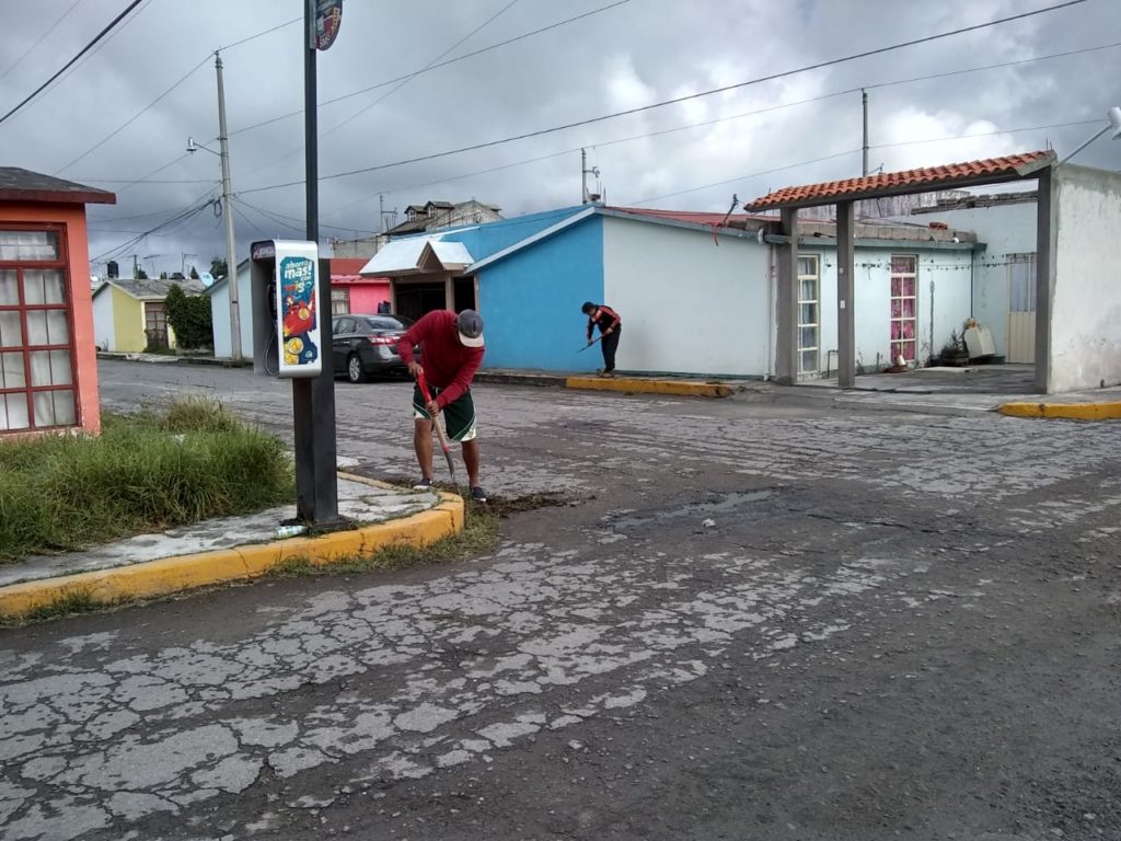 Quienes efectuaron trabajos de barrido, remoción de maleza, recolección de basura en diversas calles, entre otras labores de limpieza, con lo que se concluyeron las labores de mantenimiento en dicho fraccionamiento.