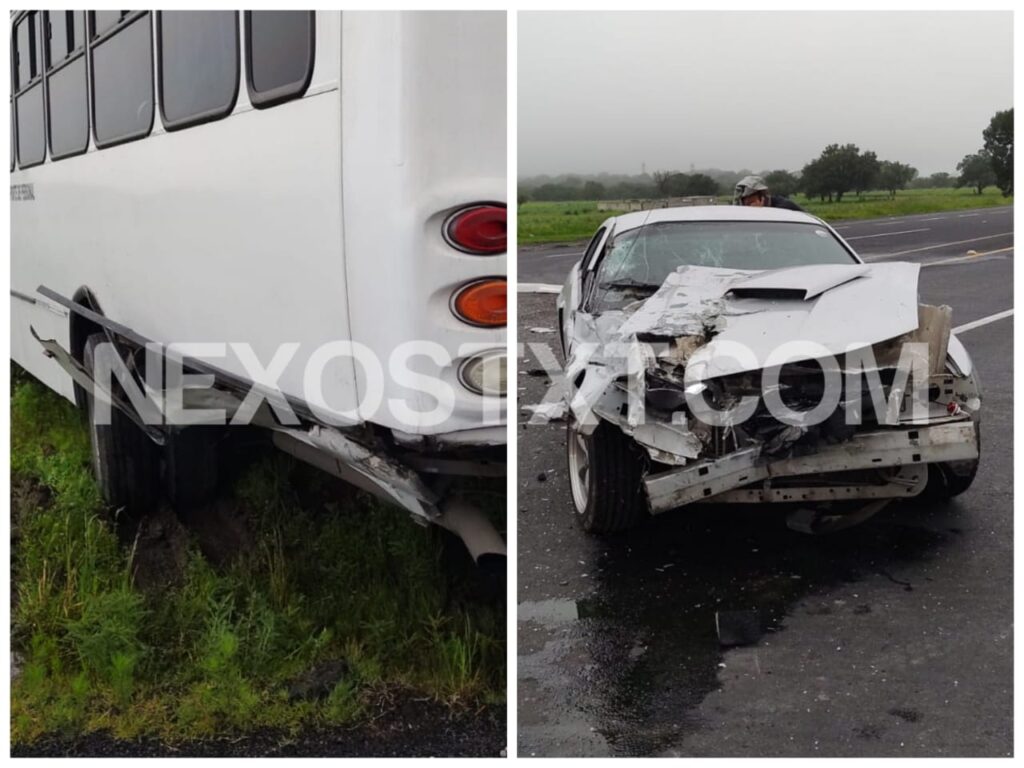 El conductor de un vehículo Mustang, color blanco, resultó lesionado después de que chocara contra un camión de transporte de personal en la carretera local Mena-Huamantla, la mañana de este jueves.