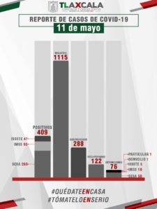El estado registra, hasta este momento, mil 115 casos negativos, 288 se encuentran en espera de resultado y 409 bajo vigilancia epidemiológica.