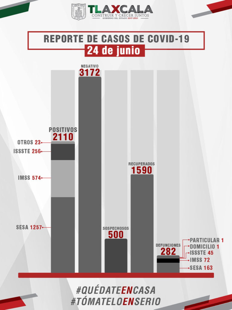 Cabe señalar que se registraron dos defunciones en la SESA; y dos fallecimientos de reciente confirmación el pasado 4 de junio en la misma institución, mientras que el IMSS reportó cuatro fallecimientos de días anteriores- 1 ocurrió el 31 de mayo, otra más el 6 de junio, una más el 7 de este mes y la última el día 8 de junio.