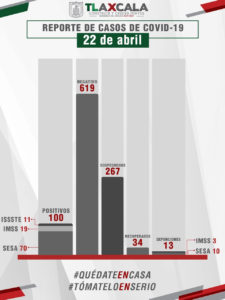Hasta este momento, en la entidad se registran 619 casos negativos, 267 se encuentran en espera de resultado y 100 positivos.
