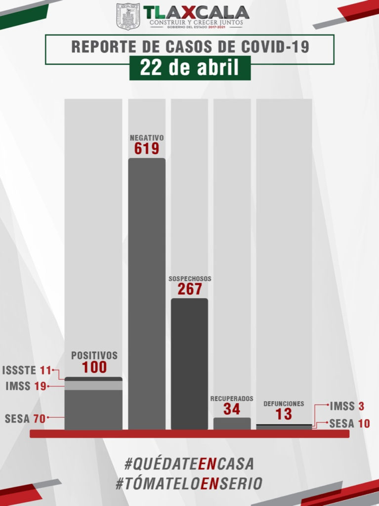 La Secretaría de Salud (SESA) confirmó cuatro fallecimientos, 10 casos más de Covid-19 y nueve personas recuperadas de la enfermedad, en Tlaxcala.