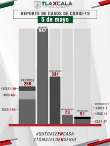 La Secretaría de Salud (SESA) confirmó 17 casos más, seis fallecimientos y cinco personas recuperadas de Covid-19 en Tlaxcala.