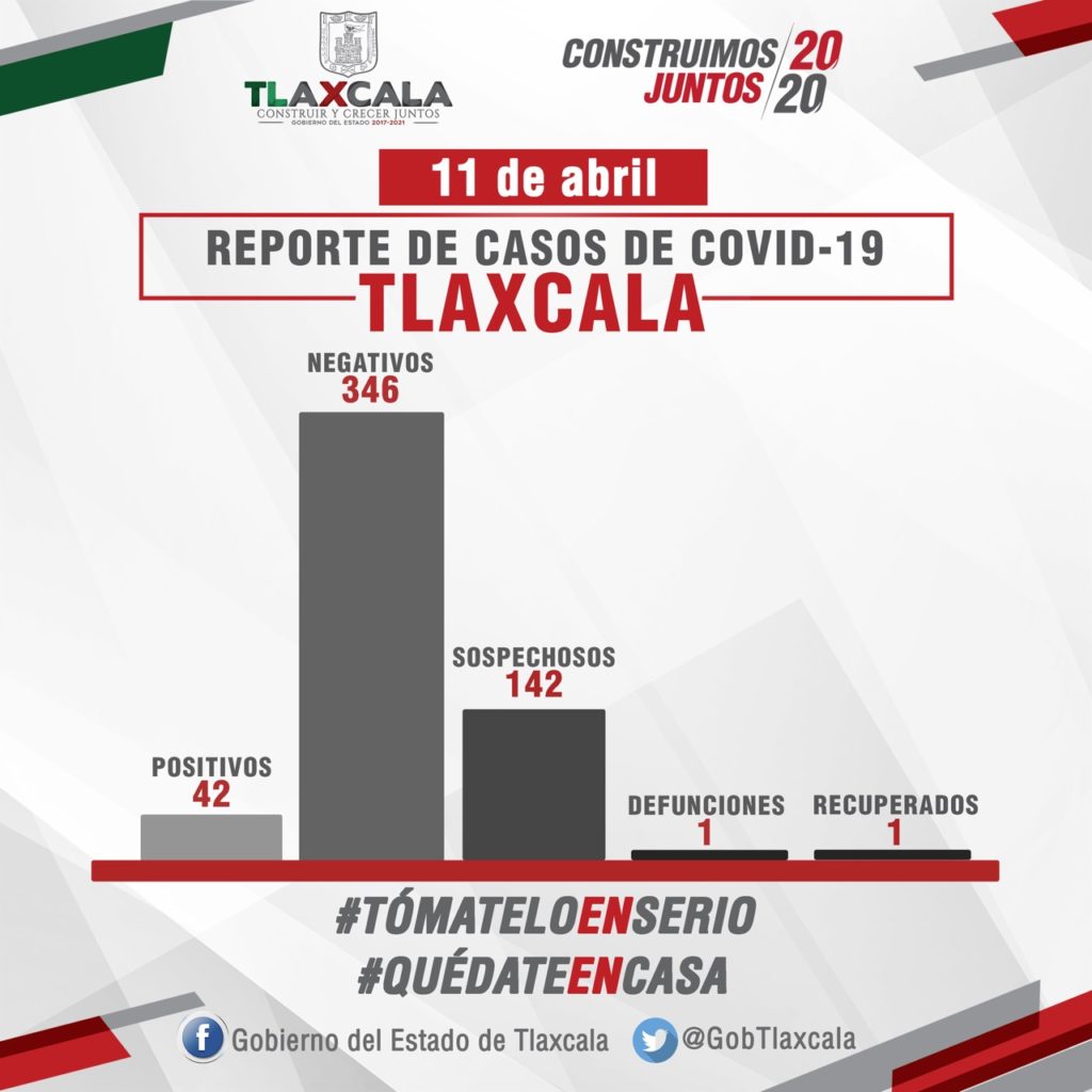 La Secretaría de Salud (SESA) confirmó un caso más de Covid-19 en Tlaxcala, con lo que la entidad registra 42 contagios por el virus.