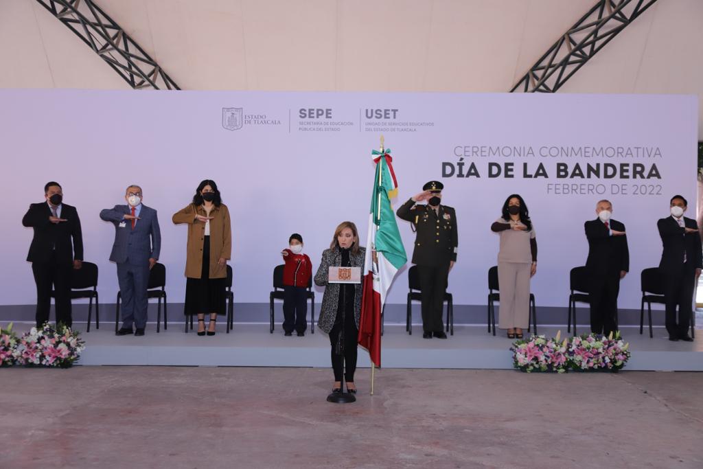 El gobierno del estado, autoridades de la Secretaría de Educación Pública y de la 23 Zona Militar, encabezaron la ceremonia conmemorativa por el Día de la Bandera, realizada en el Domo Blanco del recinto ferial de Tlaxcala este jueves 24 de febrero.