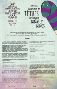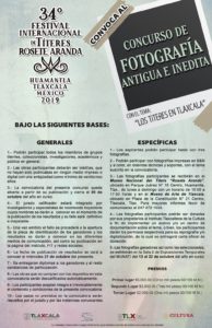 En el marco del Festival Internacional de Títeres “Rosete Aranda” (FIT), el Instituto Tlaxcalteca de la Cultura (ITC) convoca a participar en los concursos de “Fotografía Antigua e Inédita” y “Títeres hecho por Niñas y Niños de Tlaxcala”, con la finalidad de promover el arte titiritero entre los diferentes sectores de la población.