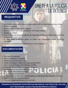 Las plazas que se están ofertando son para ocupar el puesto de oficiales preventivos, entre los requisitos principales son el presentar la carta de no antecedentes penales, además de la constancia de no Inhabilitado y una más de no haber sido recomendado por violaciones a los Derechos Humanos.