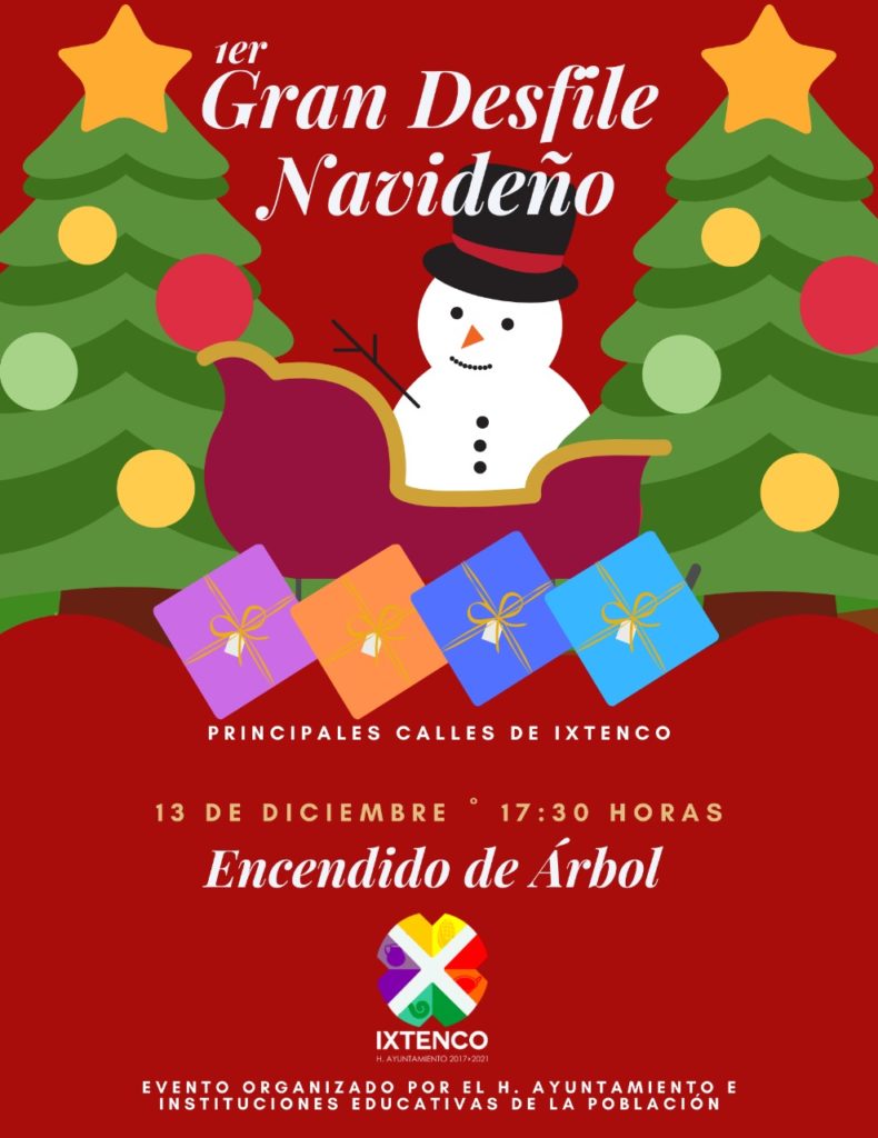El Gobierno Municipal de Ixtenco, que encabeza Miguel Ángel Caballero Yonca, anunció que más de 20 contingentes participarán en el magno desfile navideño, el cual pasará por las principales calles del Municipio, para anunciar así, el inicio de las fiestas decembrinas y dar paso al encendido del árbol en el centro de la demarcación.