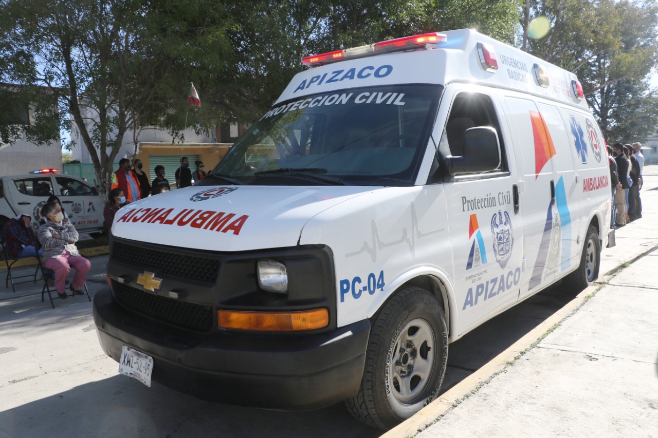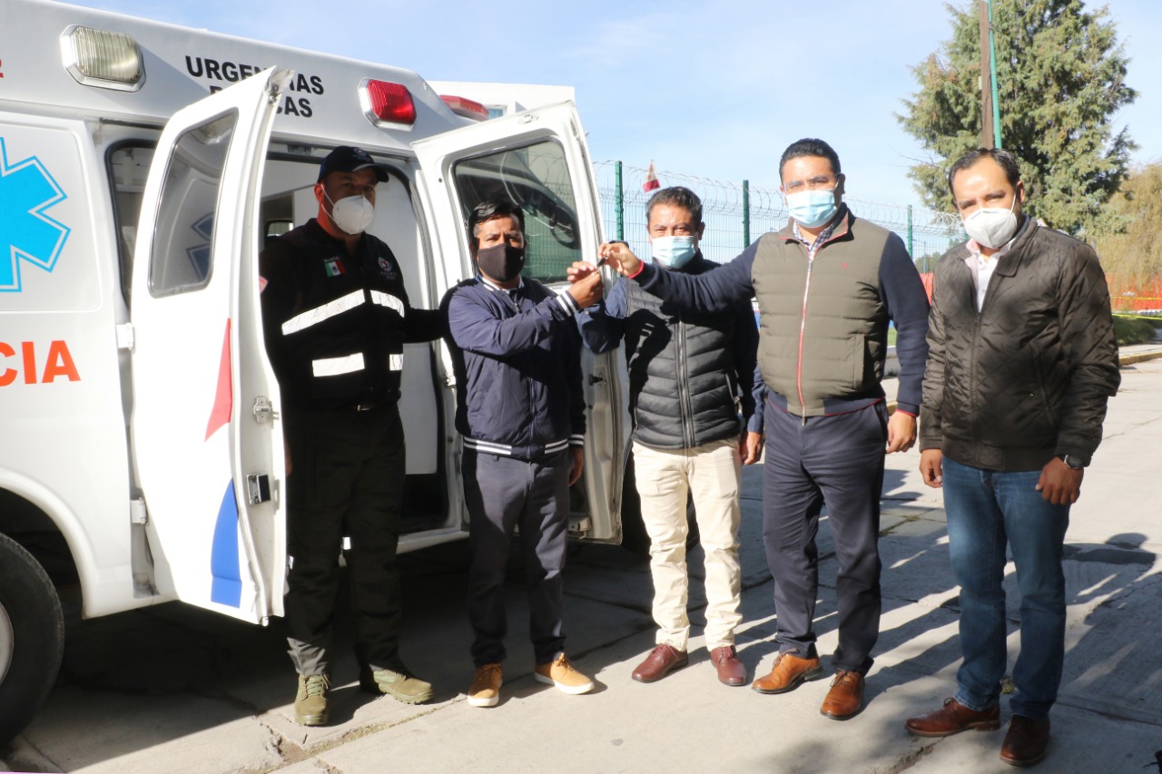 Julio César Hernández Mejía, alcalde de Apizaco y Pablo Badillo Sánchez, regidor de la Comisión de Salud, entregaron una ambulancia que beneficiará a los habitantes de Guadalupe y Santa María Texcalac.