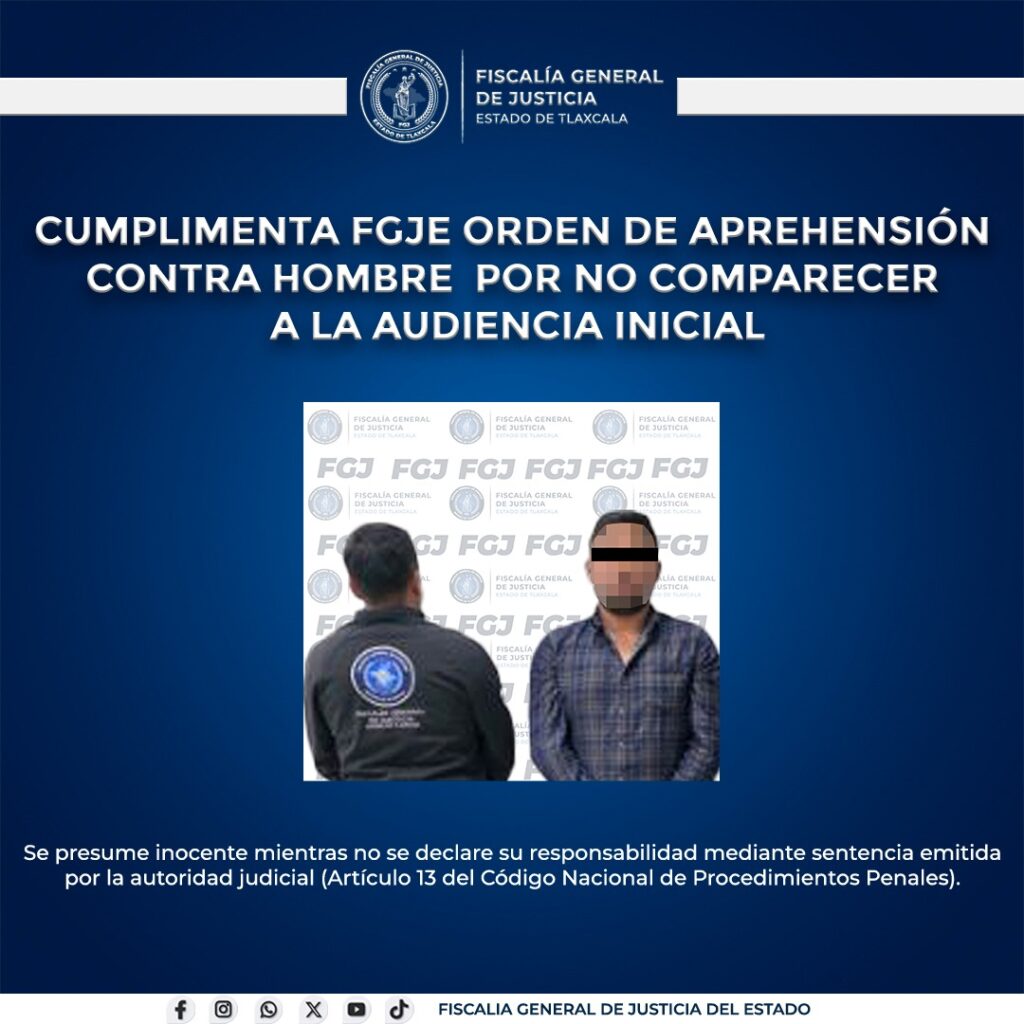 Derivado del mandamiento judicial emitido por un Juez de Control y de Juicio Oral del Distrito Judicial de Guridi y Alcocer, la Policía de Investigación realizó labores de campo y gabinete, logrando la aprehensión del imputado en Los Reyes Quiahuixtlán, municipio de Totolac.