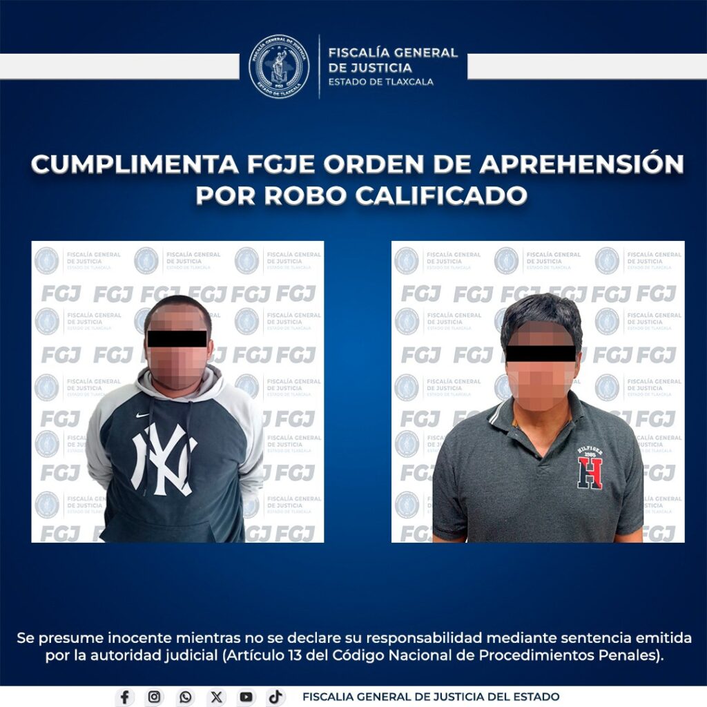 De esta manera, la Fiscalía General de Justicia del Estado reitera su compromiso de presentar ante un Juez a toda persona que atente contra la seguridad y el patrimonio de la ciudadanía tlaxcalteca.