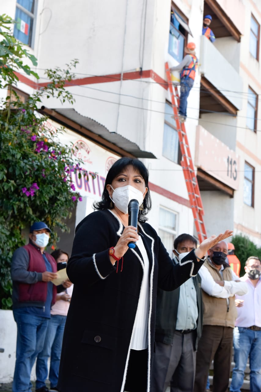 Esta ocasión y con la presencia de los delegados Emilio Alejandro Velázquez Olivares y Eder Carrasco Valencia, presidió el inicio de la primera etapa de rehabilitación e imagen urbana de la Unidad Tlapancalco con un monto de casi 1.2 millones de pesos, así como la construcción de red de drenaje sanitario en calle Ingenieros de la Colonia Loma Bonita que tendrá una inversión superior a los 195 mil pesos.