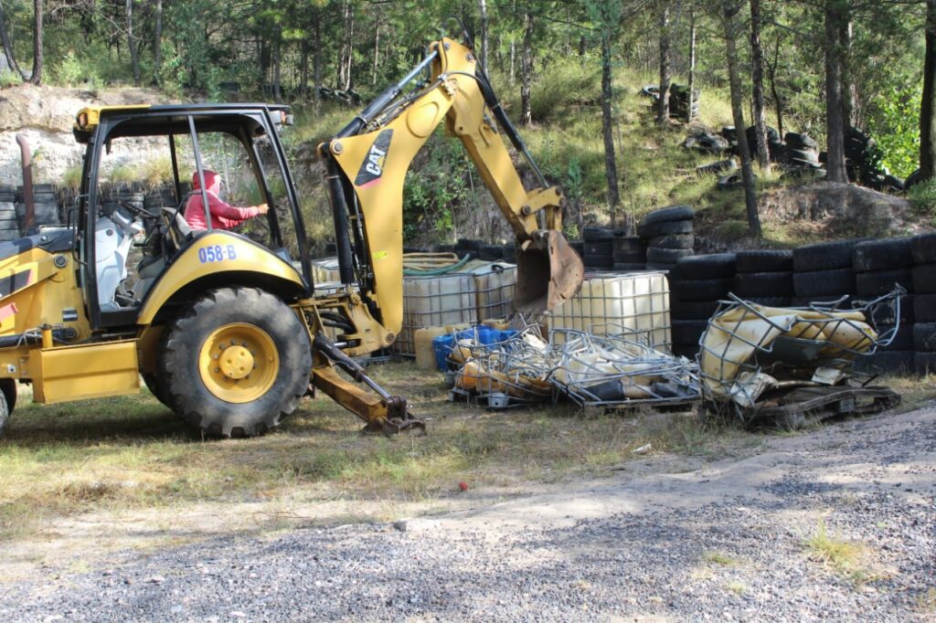 Dentro de los objetos destruidos se encontraban bidones y contenedores de diferentes tamaños, así como mangueras y un inhibidor de señal.