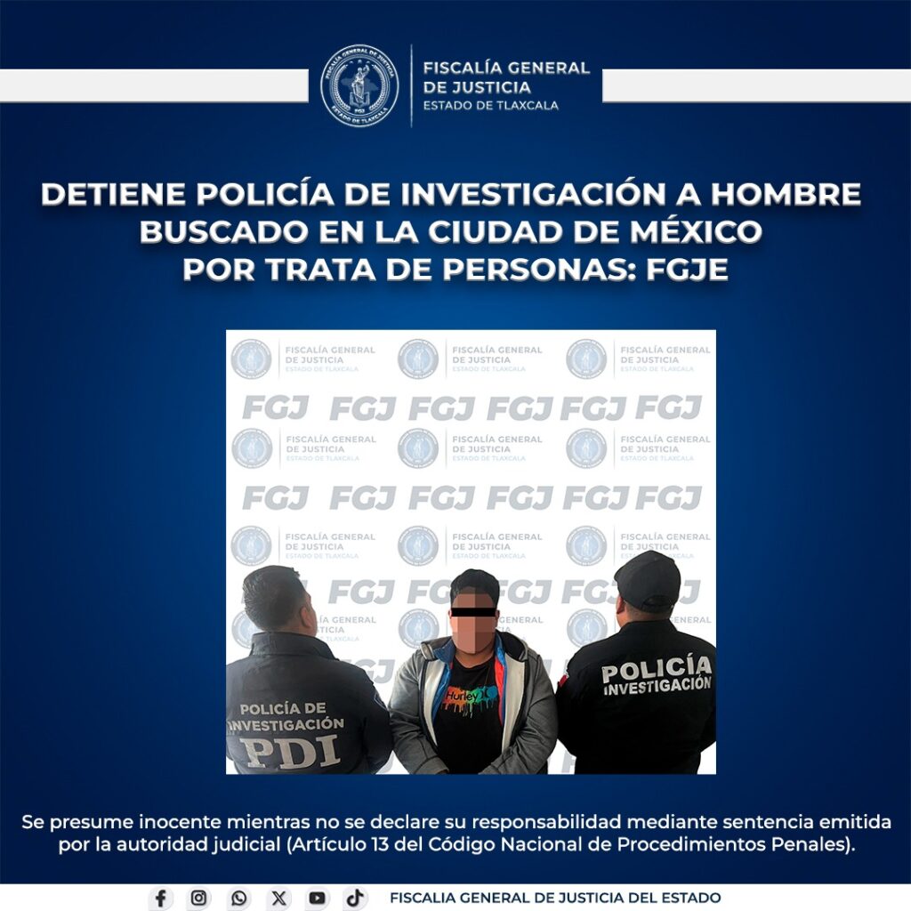 La Fiscalía General de Justicia del Estado (FGJE) colaboró con la Fiscalía General de Justicia de la Ciudad de México (FGJCDMX) para cumplimentar una orden de reaprehensión en contra de Óscar N., por el delito de trata de personas, cometido en la Ciudad de México.