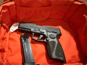 Durante la inspección física, los agentes localizaron un arma de fuego calibre 9 mm, marca Taurus, oculta entre las pertenencias de la mujer. Cabe destacar que este tipo de armamento es de uso exclusivo de las fuerzas armadas.