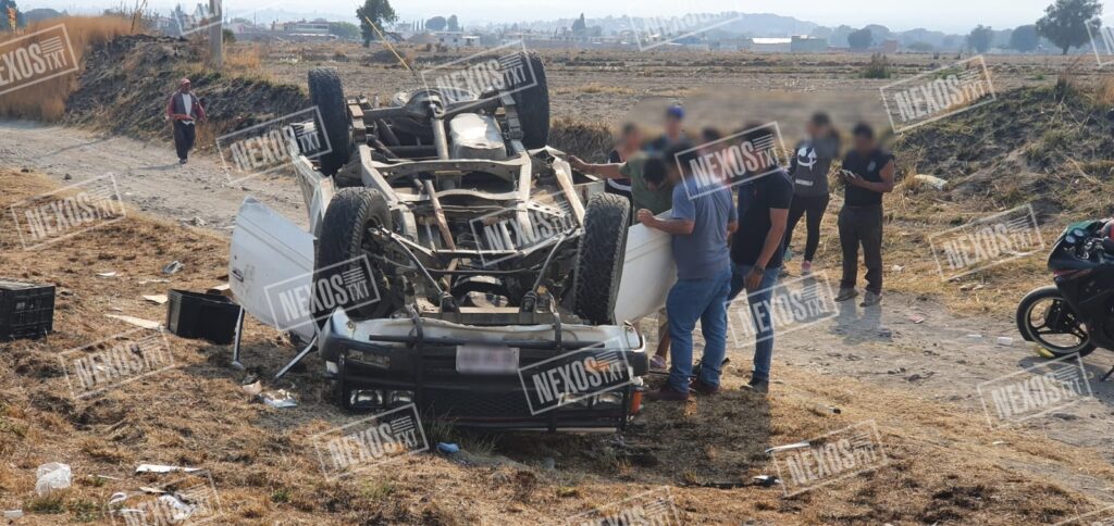 La aparatosa volcadura de una camioneta color blanco, tipo estaquitas, en la Vía Corta Chiautempan-Puebla, a la altura del municipio de Tenancingo, movilizó a paramédicos de la Cruz Roja Mexicana y a policías de la Secretaría de Seguridad Ciudadana, luego de que se reportaran dos personas lesionadas, la tarde de este sábado.