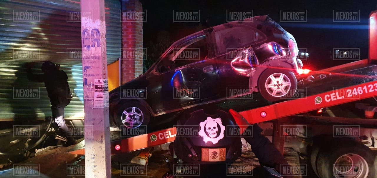 Los hechos se registraron sobre la carretera federal Tlaxcala-San Martin Texmelucan, por lo que policías municipales abanderaron el lugar del siniestro mientras que personal de servicio de grúas, realizó la extracción del vehículo, el cual afecto una cortina.