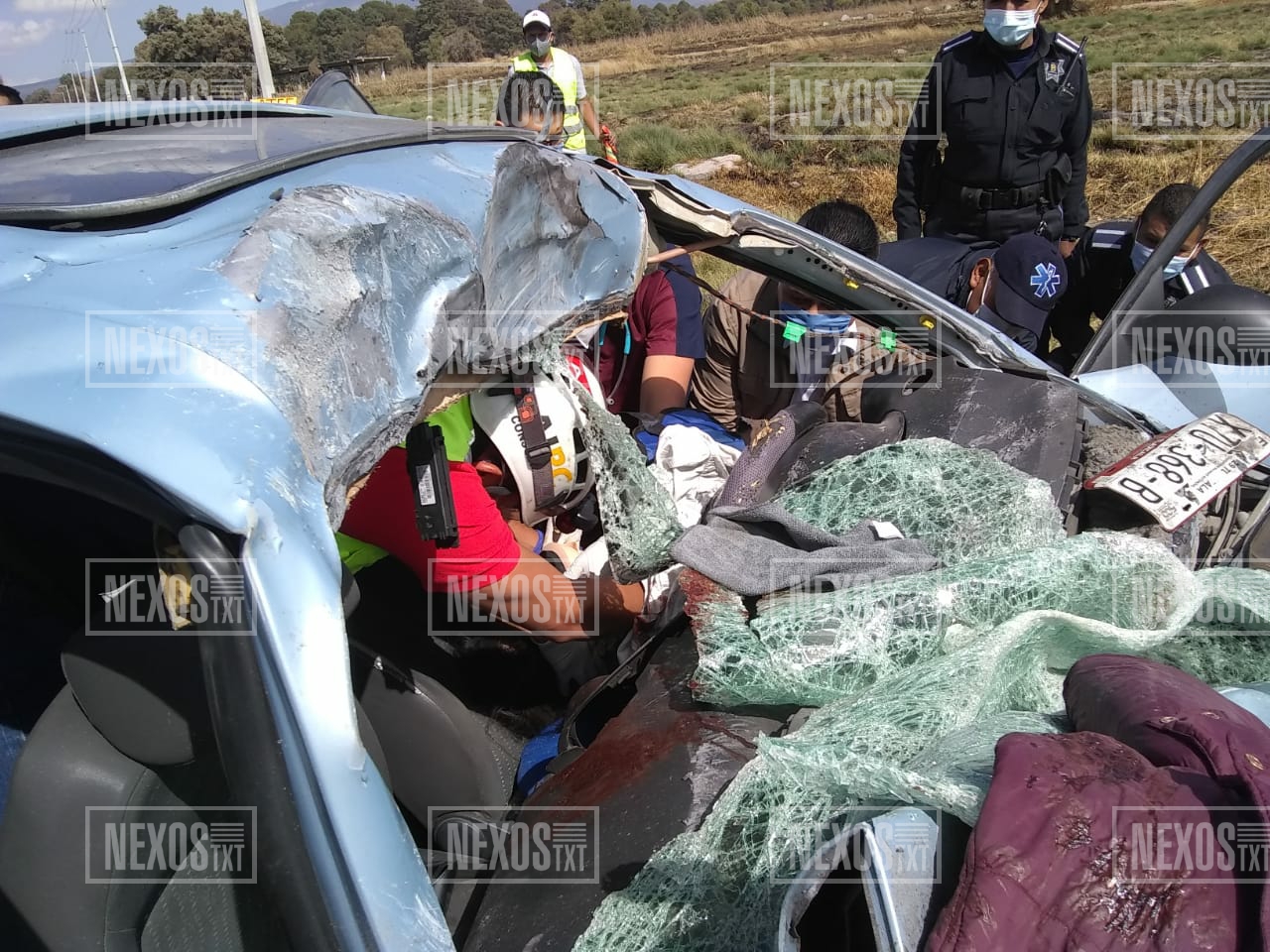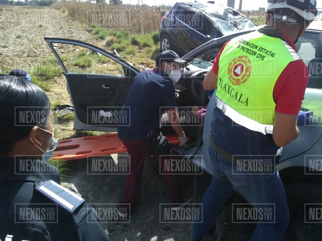 Paramédicos de Protección Civil Municipal de San Pablo del Monte y del Centro Regulador de Urgencia Médicas Tlaxcala (CRUMT), valoraron a la conductora del vehículo Seat, por lo que fue necesario su traslado a un nosocomio, por su parte el responsable fue asegurado por testigos oculares luego de que intentara darse a la fuga por terrenos baldíos.