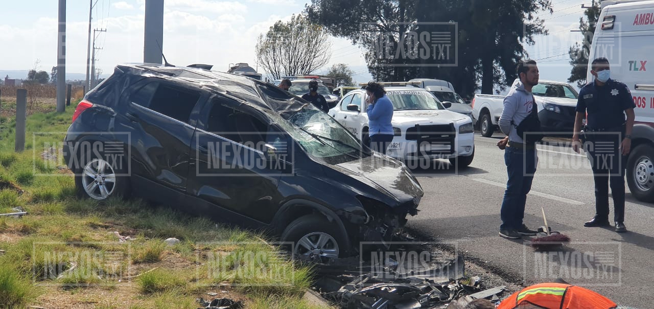 El conductor de una camioneta Trax de la marca Chevrolet, color negro, provocó un aparatoso accidente luego de que viajara bajo el influjo de las bebidas embriagantes y a exceso de velocidad, lo que dejó como saldo una mujer lesionada y atrapada al interior de un vehículo Seat, color azul, sobre la carretera Vía Corta Chiautempan-Puebla a la altura del municipio de Tenancingo.