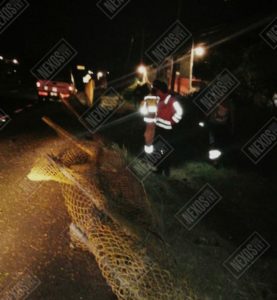 Durante su arribo, los elementos de emergencia, hallaron la malla derribada a consecuencia del accidente, por lo que de inmediato montaron un operativo de localización y búsqueda del vehículo responsable, ya que este habría empredido su huida.