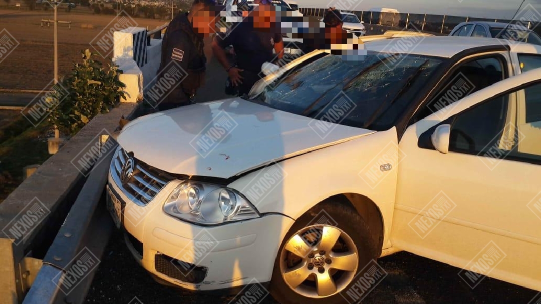 Fue en la parte alta del Puente Superior Vial (PSV) de Tochac en Xaloztoc con sentido a Apizaco, que el conductor perdió el control y chocó el Volkswagen tipo Jetta color blanco contra la estructura metálica.