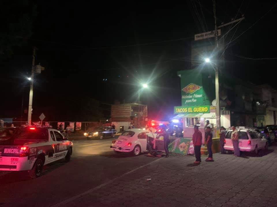 Los hechos se registraron frente a la taqueria ” El Güero”, donde un ebrio sujeto perdió el control de su unidad e impactó contra una patrulla de la Dirección de Seguridad Pública Municipal de Zacatelco y otro vehículo particular.