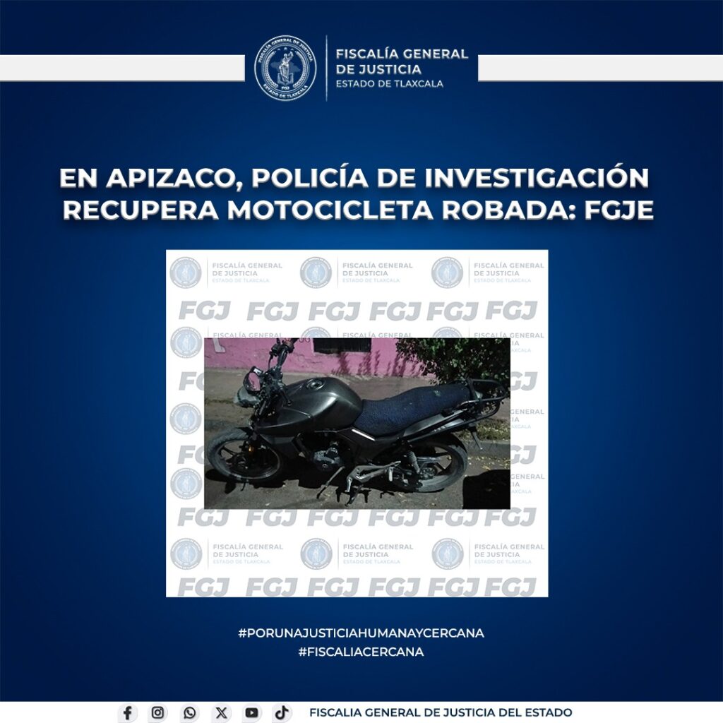 Inicio » Our Story » En Apizaco, policía de investigación recupera motocicleta robada: FGJE