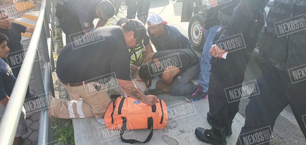 Por ello, acudieron paramédicos de Cruz Ambar, quienes ubicaron el trayecto del proyectil con orificio de entrada en cuello y salida en espalda, por lo que comenzaron a prestar la atención prehospitalaria.