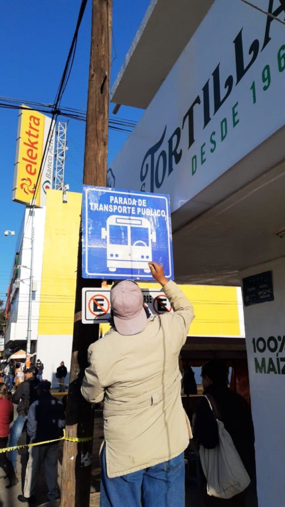 Con la finalidad de facilitar a los ciudadanos reconocer las paradas de transporte público, la dirección de Imagen Urbana de Apizaco puso en marcha los trabajos de rehabilitación de los 100 letreros de ascenso y descenso que existen en la cabecera municipal.
