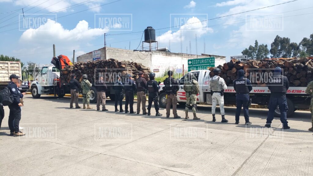 En operativo, aseguran 38 mil 166 metros cúbicos de madera de encino, en Teolocholco