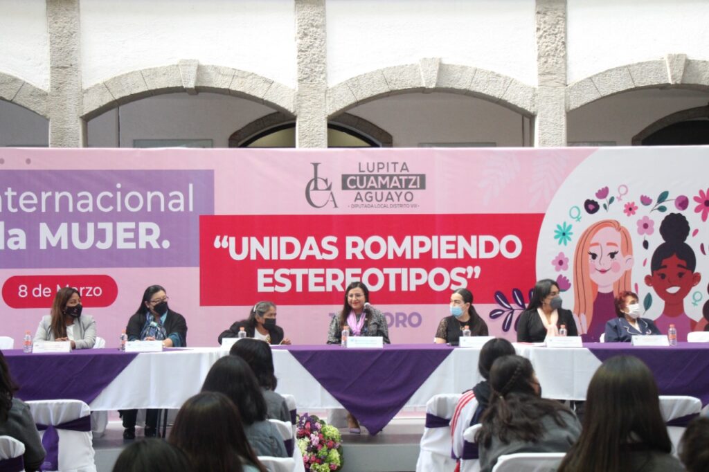 La presidenta de la Comisión de Salud de la LXIV Legislatura, la diputada Lupita Cuamatzi Aguayo, encabezó el foro “Unidas rompiendo estereotipos” dentro del marco del Día Internacional de la Mujer, que congregó a distintas activistas, servidoras públicas y autoridades municipales que compartieron sus historias de vida y cómo hicieron frente a los estereotipos para lograr ocupar espacios públicos y privados.