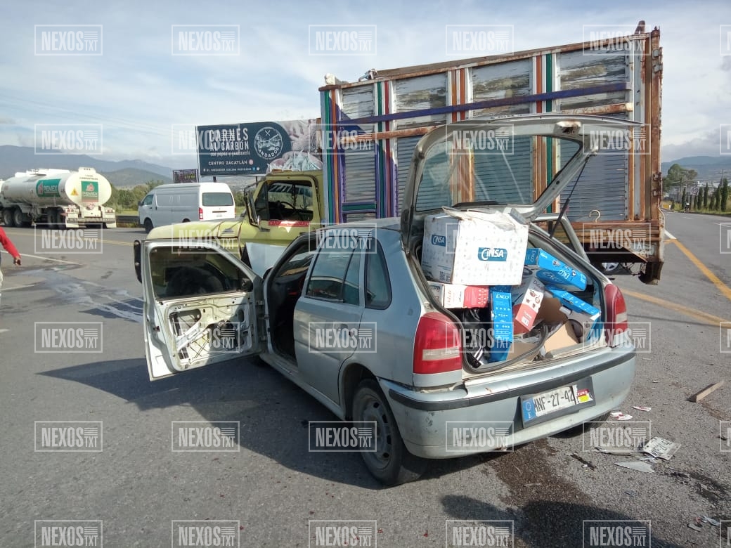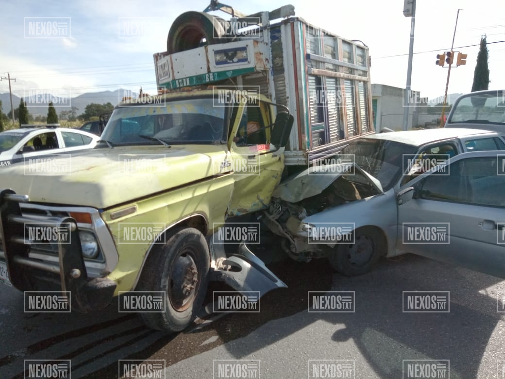 El encontronazo entre un vehículo particular y una camioneta en la carretera Apizaco – Tlaxco, a la altura del entronque a Zacatlán, dejó un saldo de una persona lesionada, el cual quedó prensado entre el tablero y los fierros de su unidad.