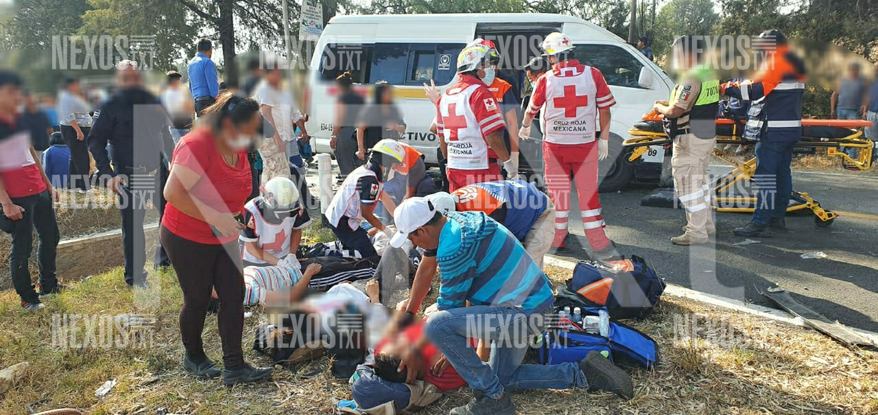 La colisión fue reportada cerca de las 16:00 horas, por lo que arribaron policías de Texoloc, y al confirmar que había una docena de heridos, pidieron el auxilio de ambulancias y bomberos de la Secretaría de Seguridad Ciudadana.