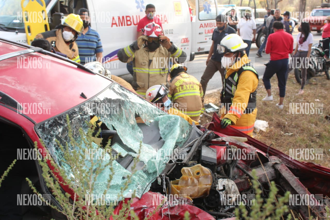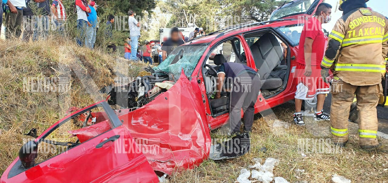 Entre los heridos, el conductor y la copiloto del vehículo Ford, tipo Focus, color rojo, quedaron atrapados entre los fierros retorcidos de su unidad, por lo que fue necesaria la intervención de bomberos con el equipo Libra o “Quijadas de la Vida”, que sirve para hacer cortes a las unidades.