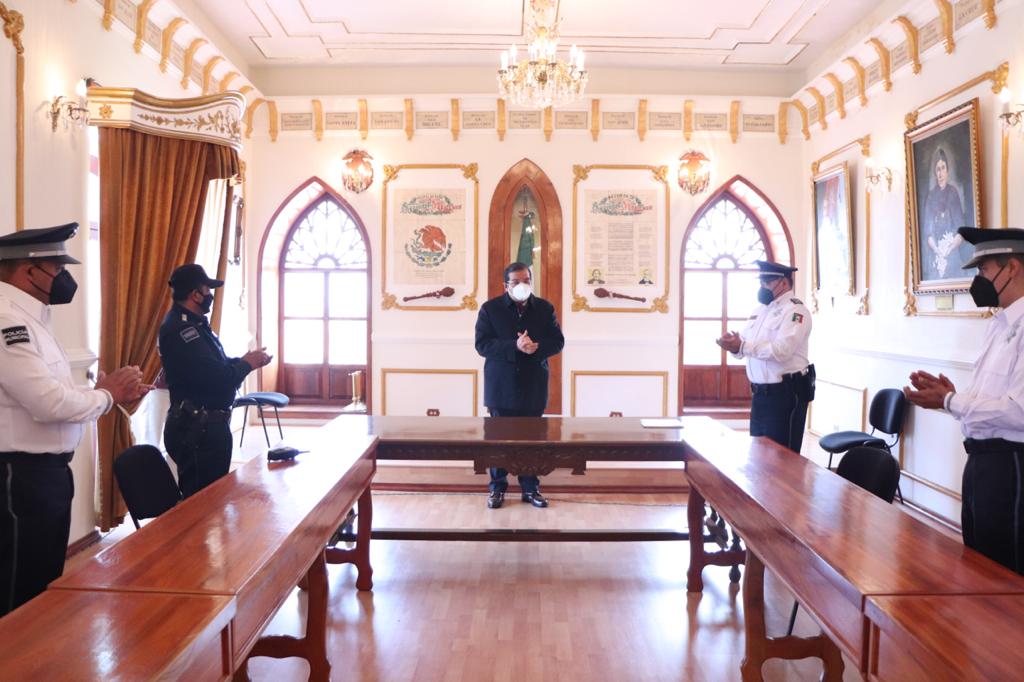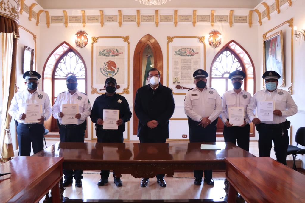 Huamantla, Tlax.- Con el objetivo de avanzar en la profesionalización de los elementos de la Dirección de Seguridad Pública, Tránsito y Protección Civil Municipal, un grupo de cinco efectivo concluyeron satisfactoriamente el plan de estudios de prepa en modalidad abierta, estudios que fueron cubiertos en su totalidad por el Gobierno Municipal que encabeza Jorge Sánchez Jasso.