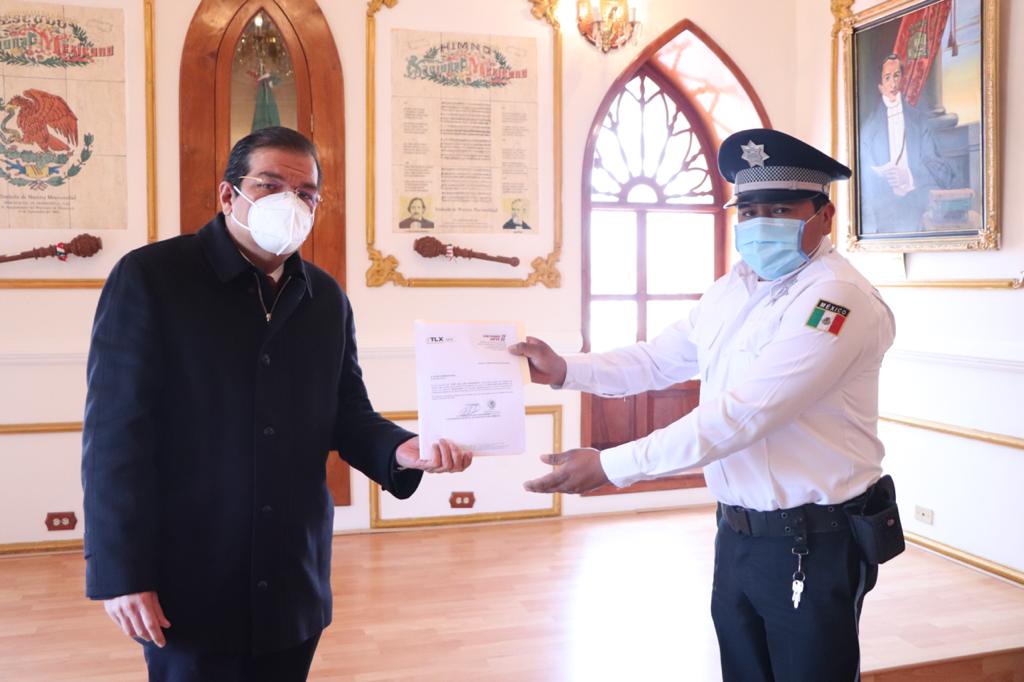 En dicha entrega también estuvo presente el Director de Seguridad Pública, Tránsito y Protección Civil Municipal René Alcántara Luna.