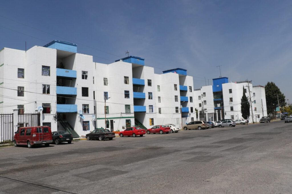 Mediante un recorrido, el alcalde explicó que 32 edificios fueron pintados con más de 180 cubetas de pintura blanca y azul, con lo que benefició a 256 departamentos con parte de los recursos obtenidos del área de parquímetros.