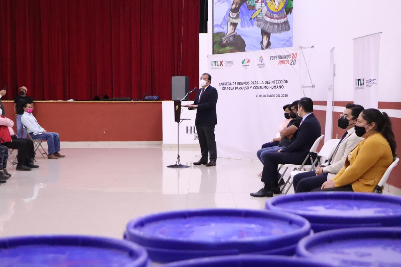 En el acto del cual fue sede el municipio de Huamantla, el alcalde Jorge Sánchez Jasso, subrayó la importancia de la labor que tiene la COEPRIST con los ciudadanos del estado, al agregar que con la entrega de insumos se podrá contar con agua limpia en los hogares, que es vital para la transformación del municipio y para la salud de sus pobladores.