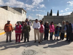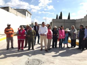 En las calles 11 sur y 7 poniente el Alcalde entregó obras de pavimentación con concreto hidráulico, que suman un total de mil 701 metros cuadrados, la obra consistió en la colocación de 7 pozos de visita, más de 25 descargas domiciliarias y el mismo numero de tomas de agua, además de la rehabilitación de la tubería que ahora es de 12 pulgadas.