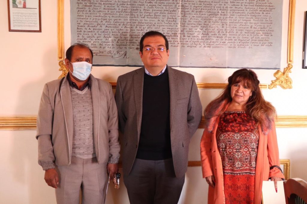 Más tarde, y de la misma comunidad, el alcalde entregó material para la construcción de la capilla de la Inmaculada Concepción, ubicada en ampliación Plan de Ayala, a nombre de los feligreses recibió doña Francisca, quien agradeció el apoyo, lo que dijo permitirá continuar con esta obra.