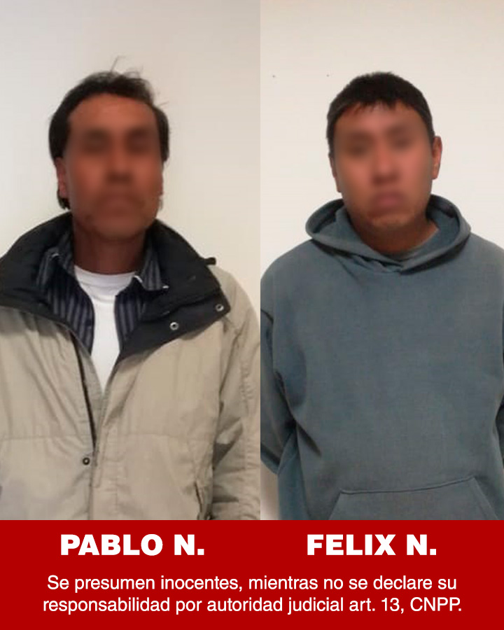 Oficiales de la Policía de Investigación de la Procuraduría General de Justicia del Estado (PGJE) realizaron la captura de Félix N., y Pablo N., quienes presuntamente participaron activamente en el homicidio de un hombre en el municipio de Teolocholco en febrero de 2018.