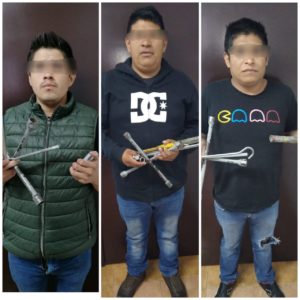 La inmediata atención a una denuncia ciudadana, permitió al Grupo Especial de Operaciones (GEO), asegurar tres hombres la madrugada del 14 de mayo, y a quienes les encontraron objetos para hurtar neumáticos.