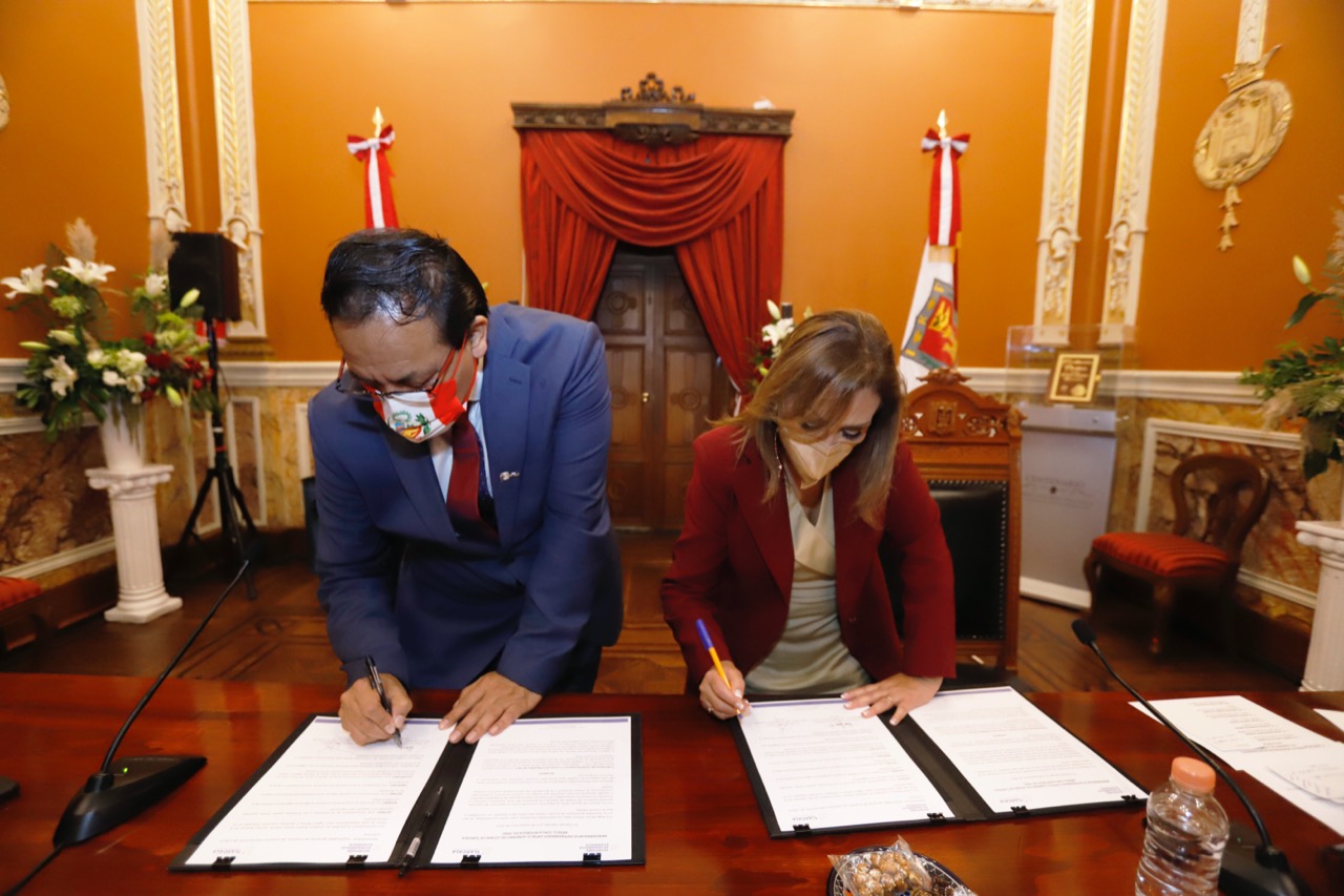 La gobernadora de Tlaxcala, Lorena Cuéllar Cisneros y el Ministro de Comercio Exterior y Turismo del Perú, Roberto Sánchez Palomino, firmaron el memorándum de entendimiento para fortalecer las relaciones en ámbitos económicos, turísticos, culturales y políticos entre ambas administraciones.