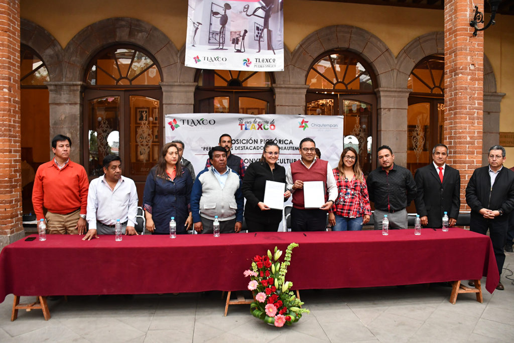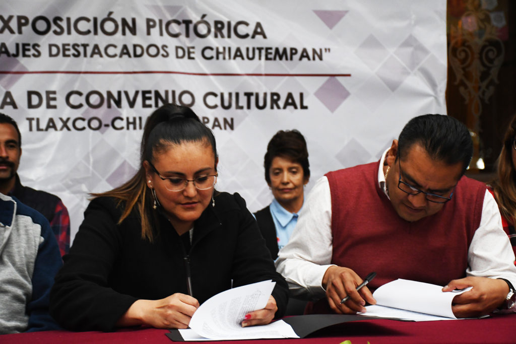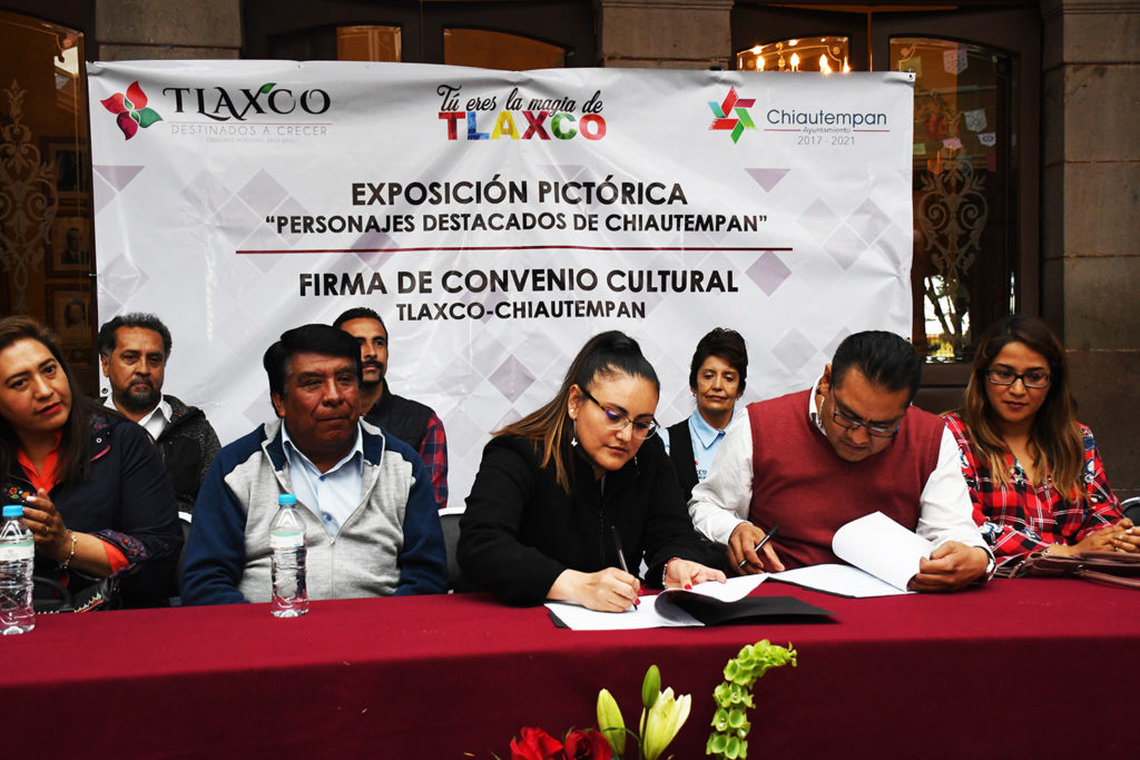 Los alcaldes de Tlaxco y Chiautempan, Gardenia Hernández Rodríguez y Héctor Ramírez Rugeiro, respectivamente, signaron un convenio de colaboración entre las dos comunas el cual busca fomentar el desarrollo cultural e intercambio de acervo municipal entre las dos ciudades, para fomentar presentaciones artísticas como la exposición pictórica Personajes Destacados de Chiautempan.