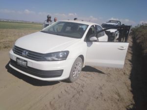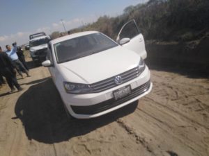Ante la declaración del agraviado, los oficiales a bordo de la radio patrulla I-01, iniciaron con la búsqueda de los vehículos con esa descripción, notando sobre el camino viejo a Santa Ana Ríos, Municipio de Huamantla un vehículo Vento color blanco que circulaba sobre esa zona y a claro exceso de velocidad, el agraviado indicó que se trata de su unidad.